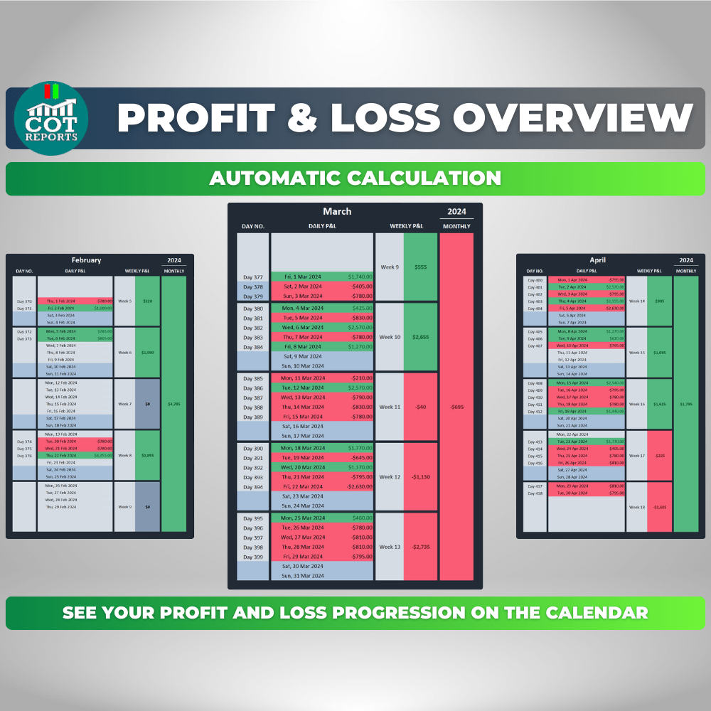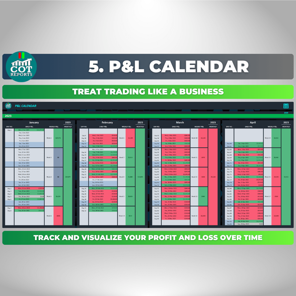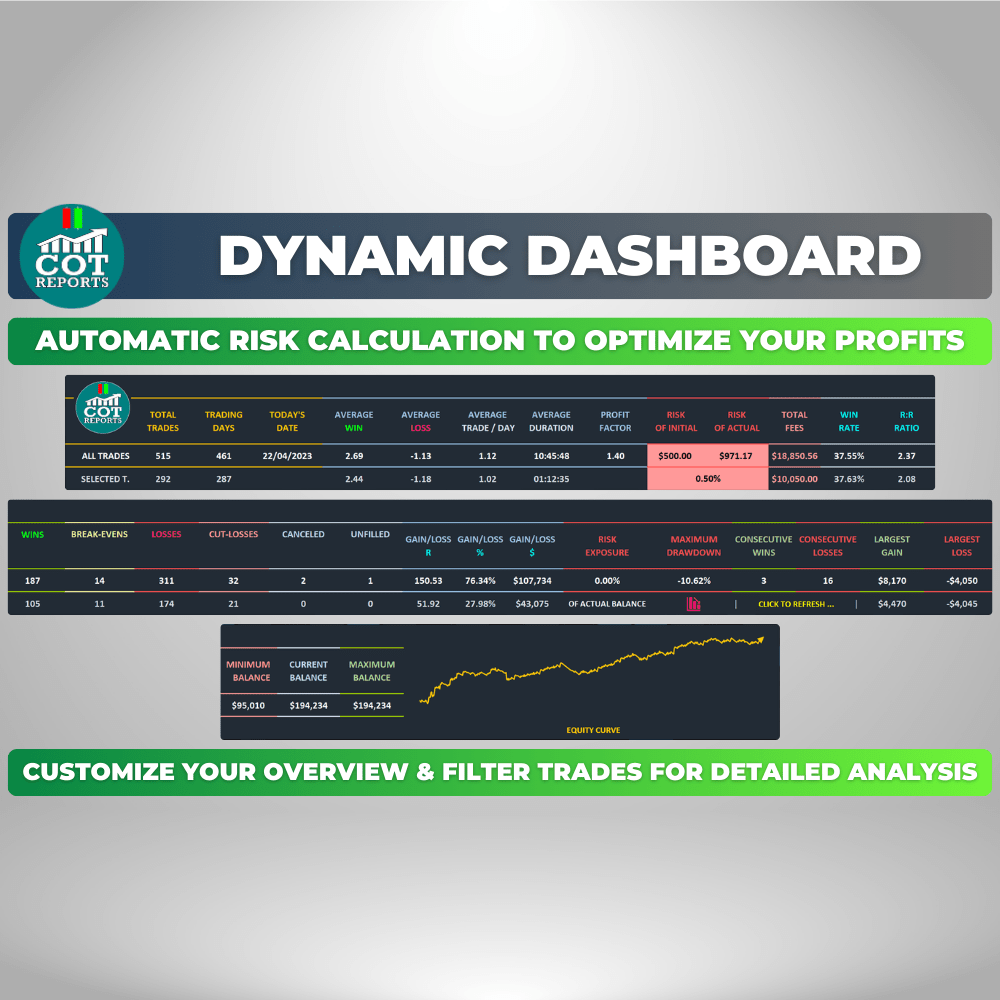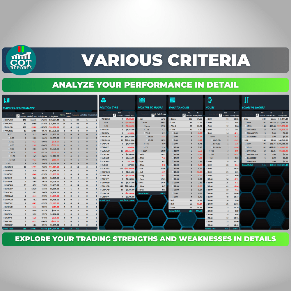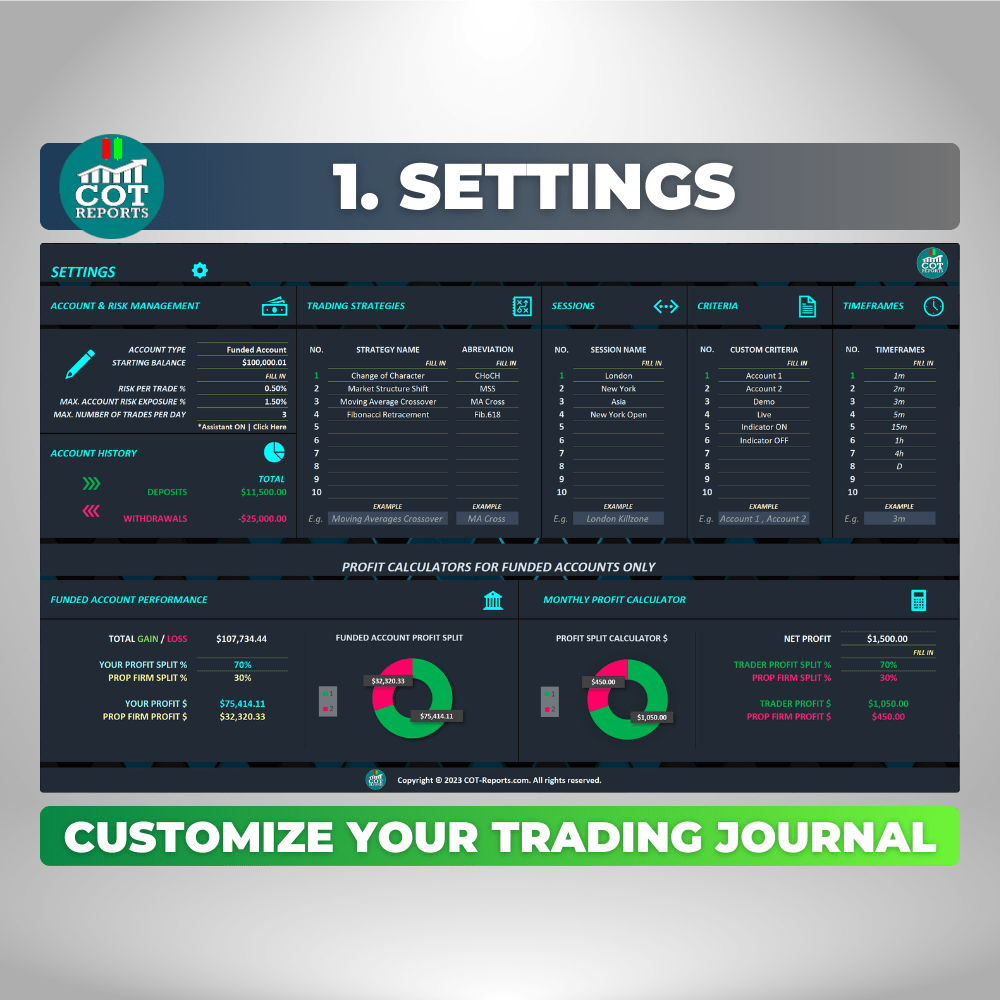 Whether you’re a complete beginner or an advanced trader, the COT-Reports Trading Journal spreadsheet is designed to help you take your trading to the next level. For beginners, it’s an excellent way to get started on the right foot by providing a detailed analysis of your trading history and identifying patterns and areas for improvement. It’s packed with features that make it easy to track your performance, analyze your trades, and more.