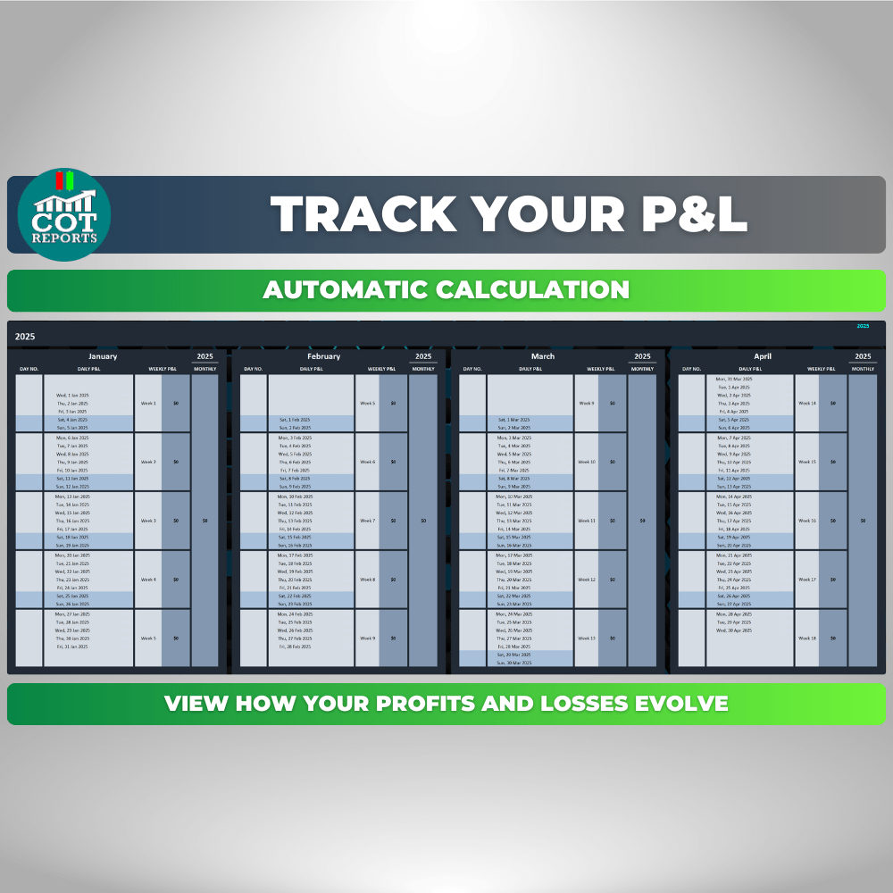 COT Reports Trading Journal Spreadsheet 2025